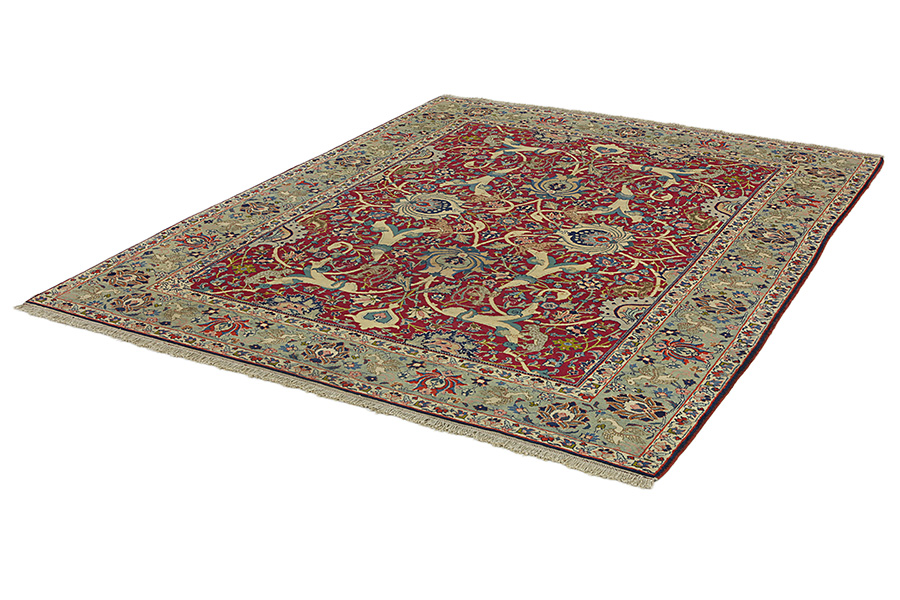 Tabriz Carpets : The city of Tabriz is the capital of Azerbaijan province in Northwestern Iran. Until the end of the caravans era it was the most important centre for trade and carpet weaving. Tabriz supplied the West with masterpieces that were made by renowned and very capable weavers. Their high quality of Tabriz carpets made them renowned in world markets. Many workshops where created where hand-woven carpets with very high density knots and high quality materials where woven. Silk and fine quality wool establish these carpets as very high class. No other city in Persia produced such large quantity or variety of carpets. With or without a medallion, their designs are full of imagination and individuality. Flowers, scenes, stanzas of poems often decorate them. Their predominant colors are beige, blue and red.