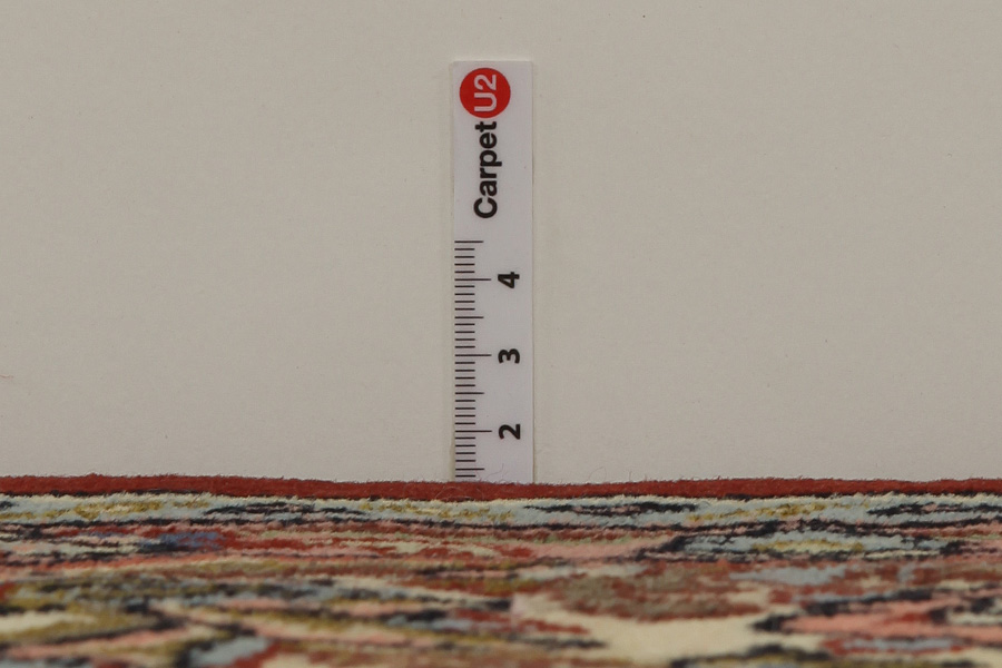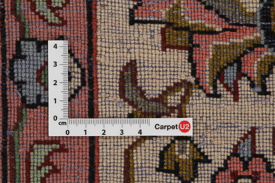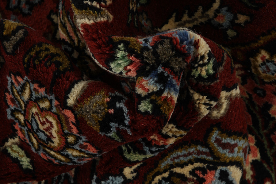 Abrash: Due to the different amount of grease in the wool and the added salt during the process of dyeing, the wool has got a varying colour absorbance. This is not very visible before weaving. During the weaving though, lines of the same colour are formed in the carpet. This is called Abrash (which in Farsi means little cloud) and it shows that the wool was not manufactured using chemical means and marks the naturalness and authenticity of the carpets. Examples