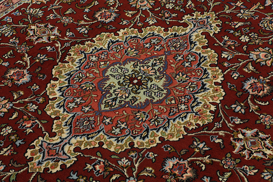 Tabriz Carpets : The city of Tabriz is the capital of Azerbaijan province in Northwestern Iran. Until the end of the caravans era it was the most important centre for trade and carpet weaving. Tabriz supplied the West with masterpieces that were made by renowned and very capable weavers. Their high quality of Tabriz carpets made them renowned in world markets. Many workshops where created where hand-woven carpets with very high density knots and high quality materials where woven. Silk and fine quality wool establish these carpets as very high class. No other city in Persia produced such large quantity or variety of carpets. With or without a medallion, their designs are full of imagination and individuality. Flowers, scenes, stanzas of poems often decorate them. Their predominant colors are beige, blue and red.