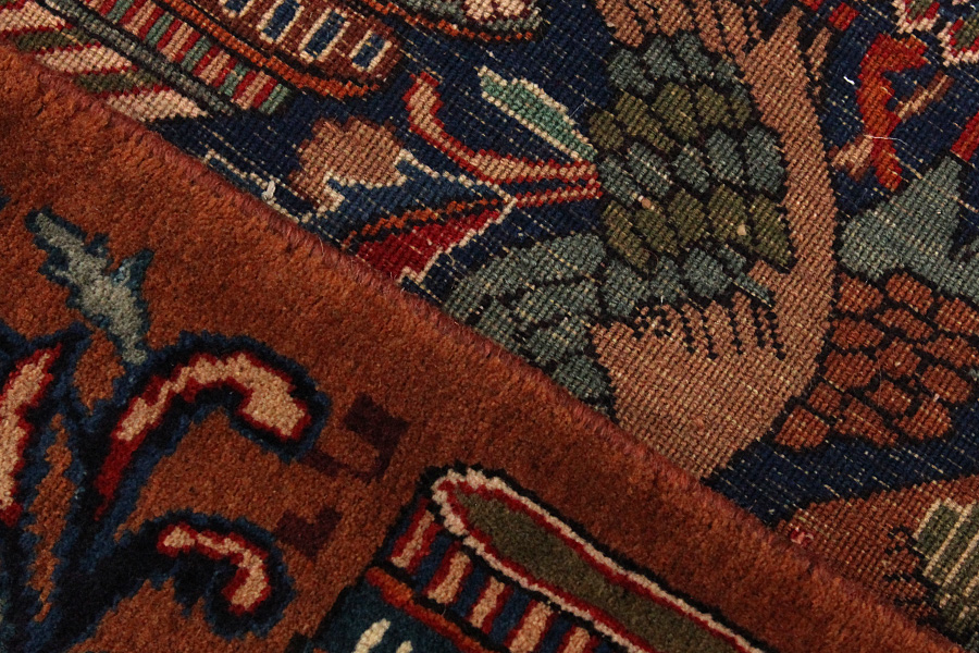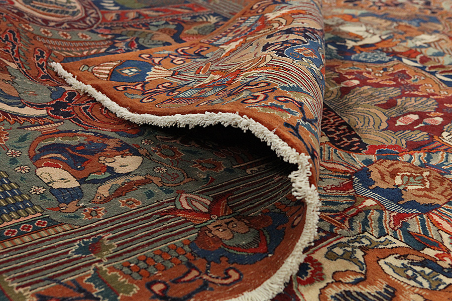 Kashmar Carpets : The city of Kashmar is located in the Khorasan province southwest of the city Mashad in Eastern Iran. It has a very rich history and its old name is Torshiz. Exquisite high quality carpets have been woven for centuries there. The carpets are woven thick, with fine soft wool in beautiful blue colors in contrast with cream and ivory beige. In newer carpets they use soft green, red and brown. Characteristic of Kashmar carpets are the large sizes and the unique designs that look like paintings with trees, flowers and domes of mosques. Also depicted are representations that recount historical events, major incidents from Persian history or a historically known person or the story of a revered Persian king. In Kashmar they weave elegant masterpieces of color harmony, complexity of designs in detail, to show the Persian love of beauty and art. Kashmar rugs and carpets are durable and grow more beautiful with time.