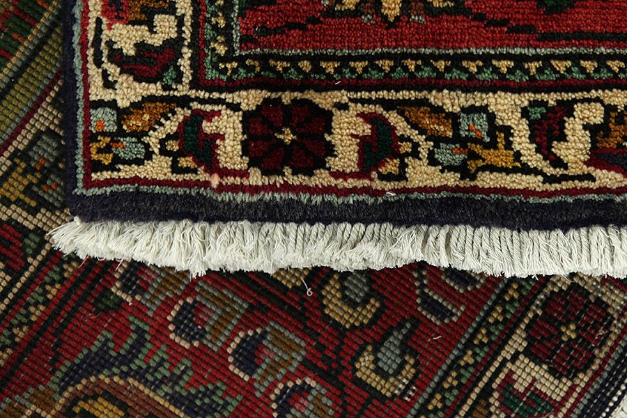 Abrash: Due to the different amount of grease in the wool and the added salt during the process of dyeing, the wool has got a varying colour absorbance. This is not very visible before weaving. During the weaving though, lines of the same colour are formed in the carpet. This is called Abrash (which in Farsi means little cloud) and it shows that the wool was not manufactured using chemical means and marks the naturalness and authenticity of the carpets. Examples