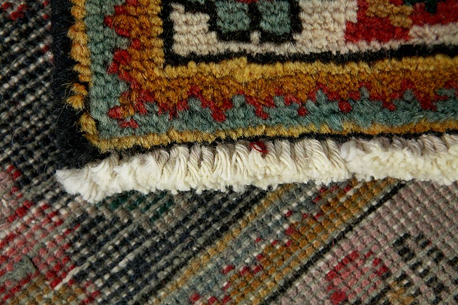 Abrash: Due to the different amount of grease in the wool and the added salt during the process of dyeing, the wool has got a varying colour absorbance. This is not very visible before weaving. During the weaving though, lines of the same colour are formed in the carpet. This is called Abrash (which in Farsi means little cloud) and it shows that the wool was not manufactured using chemical means and marks the naturalness and authenticity of the carpets. Examples