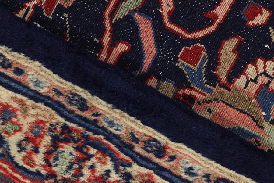 Abrash: Due to the different amount of grease in the wool and the added salt during the process of dyeing, the wool has got a varying colour absorbance. This is not very visible before weaving. During the weaving though, lines of the same colour are formed in the carpet. This is called Abrash (which in Farsi means little cloud) and it shows that the wool was not manufactured using chemical means and marks the naturalness and authenticity of the carpets. Examples