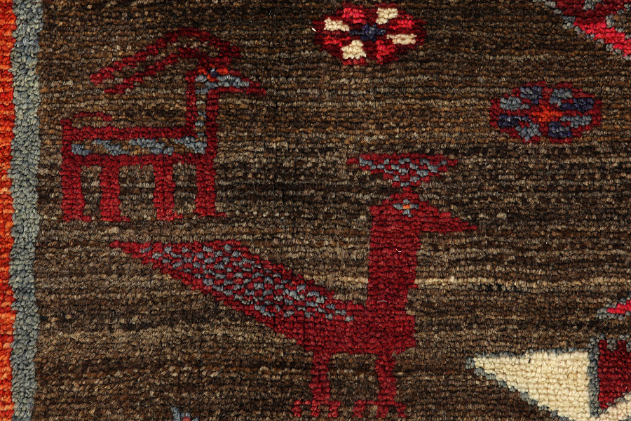Gabbeh Carpets : Gabbeh in Farsi means natural, primitive. Carpets and textiles with this name are woven by the nomads Qashqai who roam about, or in villages in Southwestern Iran where they live. The yarns are processed and twisted by hand, painted with herbal colors and woven with a wool warp up to 2 cm thick. These carpets are simple, with few designs, or monochrome. The simple, linear designs with animals and human figures give them a contemporary look. Various names are given to Gabbeh carpets such as Basic, Amalehbaft, Kashkooli, Luribaft and Sumak. Gabbeh Kashkooli is a carpet with high knot density and thinner than ordinary Persian Gabbeh carpets. The Persian Gabbeh is very durable and its quality is very good.