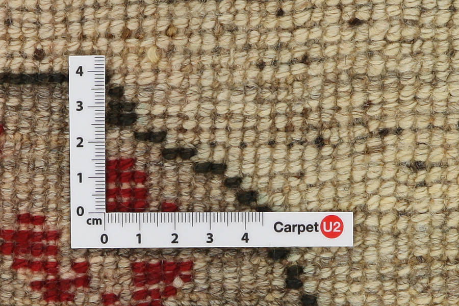 Abrash: Due to the different amount of grease in the wool and the added salt during the process of dyeing, the wool has got a varying colour absorbance. This is not very visible before weaving. During the weaving though, lines of the same colour are formed in the carpet. This is called Abrash (which in Farsi means little cloud) and it shows that the wool was not manufactured using chemical means and marks the naturalness and authenticity of the carpets. Examples