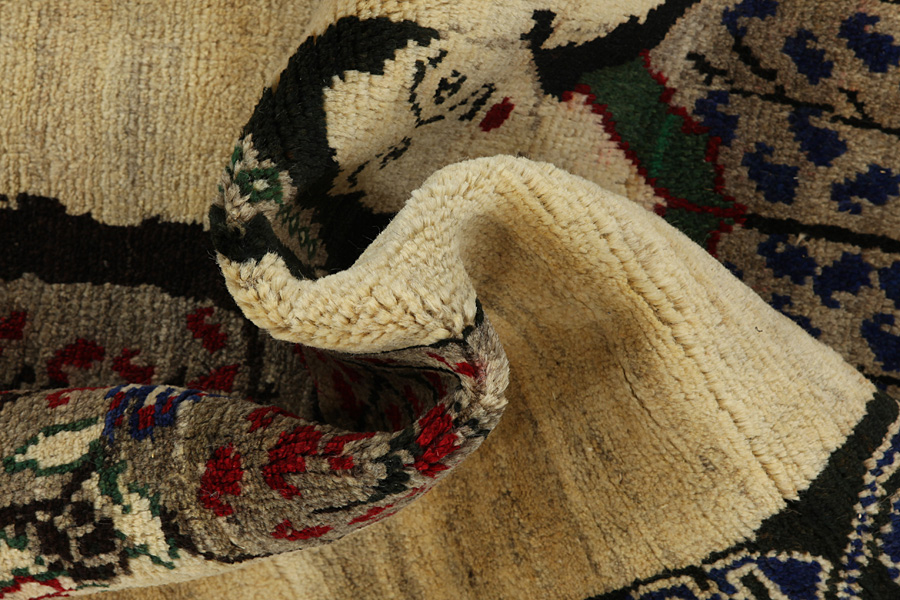 Gabbeh Carpets : Gabbeh in Farsi means natural, primitive. Carpets and textiles with this name are woven by the nomads Qashqai who roam about, or in villages in Southwestern Iran where they live. The yarns are processed and twisted by hand, painted with herbal colors and woven with a wool warp up to 2 cm thick. These carpets are simple, with few designs, or monochrome. The simple, linear designs with animals and human figures give them a contemporary look. Various names are given to Gabbeh carpets such as Basic, Amalehbaft, Kashkooli, Luribaft and Sumak. Gabbeh Kashkooli is a carpet with high knot density and thinner than ordinary Persian Gabbeh carpets. The Persian Gabbeh is very durable and its quality is very good.