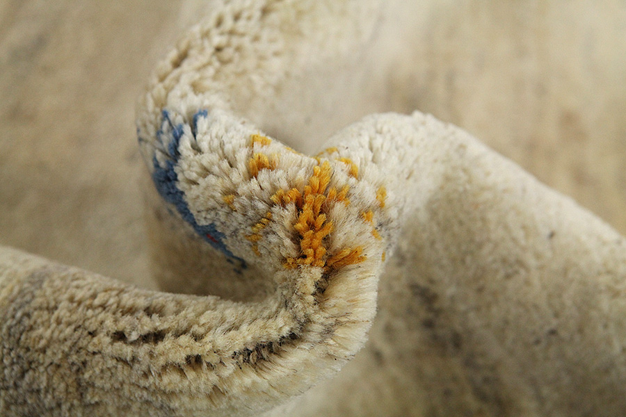 Abrash: Due to the different amount of grease in the wool and the added salt during the process of dyeing, the wool has got a varying colour absorbance. This is not very visible before weaving. During the weaving though, lines of the same colour are formed in the carpet. This is called Abrash (which in Farsi means little cloud) and it shows that the wool was not manufactured using chemical means and marks the naturalness and authenticity of the carpets. Examples