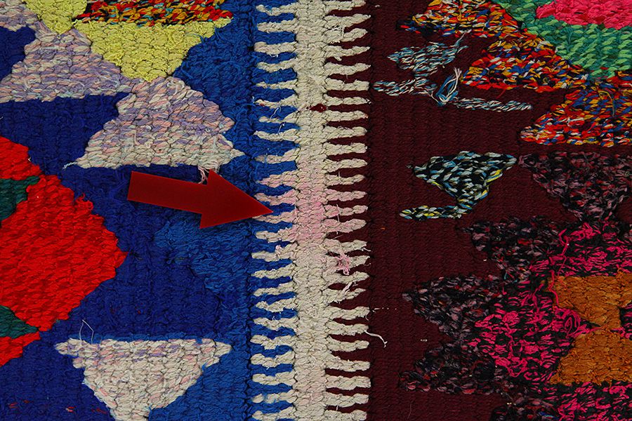 Flat woven at one or both ends of the carpet's width: In some carpets the nomads weave at fringes on a narrow Kilim one or both sides of the width, or they weave them artistically into small braids. It is a technique various weavers use for a greater durability or simply to demonstrate their skill. Examples