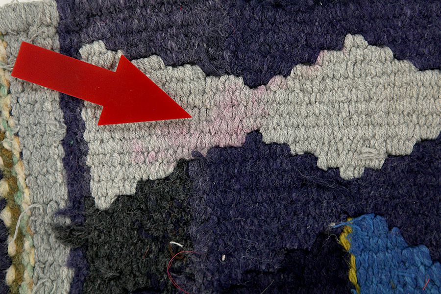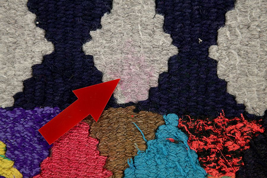 Abrash: Due to the different amount of grease in the wool and the added salt during the process of dyeing, the wool has got a varying colour absorbance. This is not very visible before weaving. During the weaving though, lines of the same colour are formed in the carpet. This is called Abrash (which in Farsi means little cloud) and it shows that the wool was not manufactured using chemical means and marks the naturalness and authenticity of the carpets. Examples