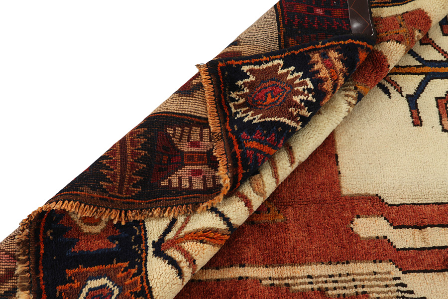 Qashqai Carpets : Qashqai carpets are woven by nomads who live in the mountainous areas of Southwest Persia, the provinces of Fars, Khuzestan, south of Isfahan and around the city Shiraz. Their carpets have a high knot density and a wide variety of designs, usually in deep red and blue colors. They weave carpets, Kilims and decorative textiles (ribbons, bags, etc.), which depict scenes from their lives with various representation of humans, animals, birds, trees and flowers. They also depict historical monuments, mostly from Persepolis.