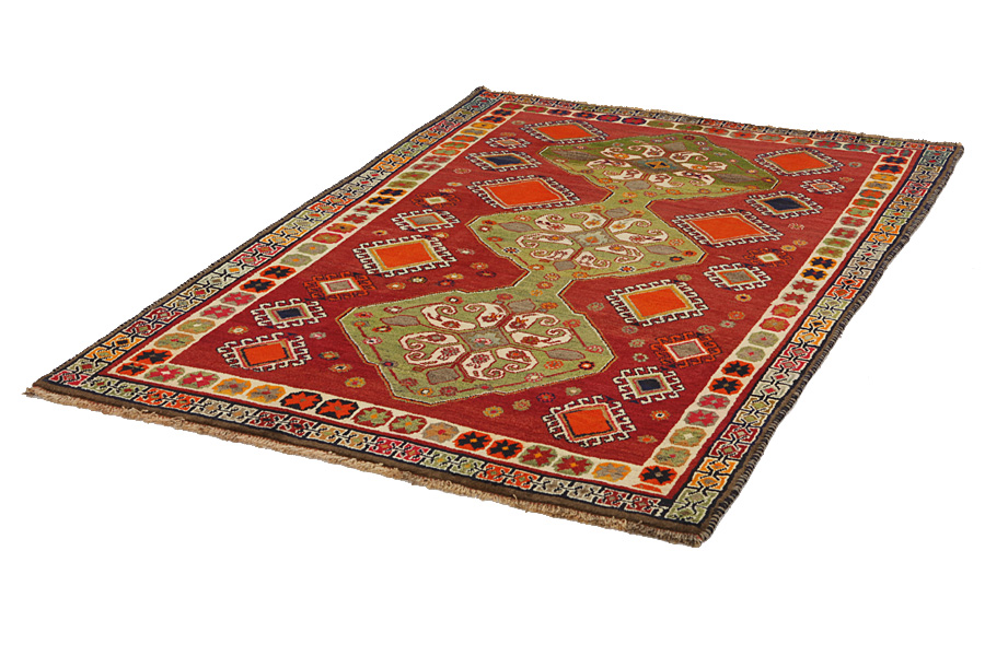 Qashqai Carpets : Qashqai carpets are woven by nomads who live in the mountainous areas of Southwest Persia, the provinces of Fars, Khuzestan, south of Isfahan and around the city Shiraz. Their carpets have a high knot density and a wide variety of designs, usually in deep red and blue colors. They weave carpets, Kilims and decorative textiles (ribbons, bags, etc.), which depict scenes from their lives with various representation of humans, animals, birds, trees and flowers. They also depict historical monuments, mostly from Persepolis.