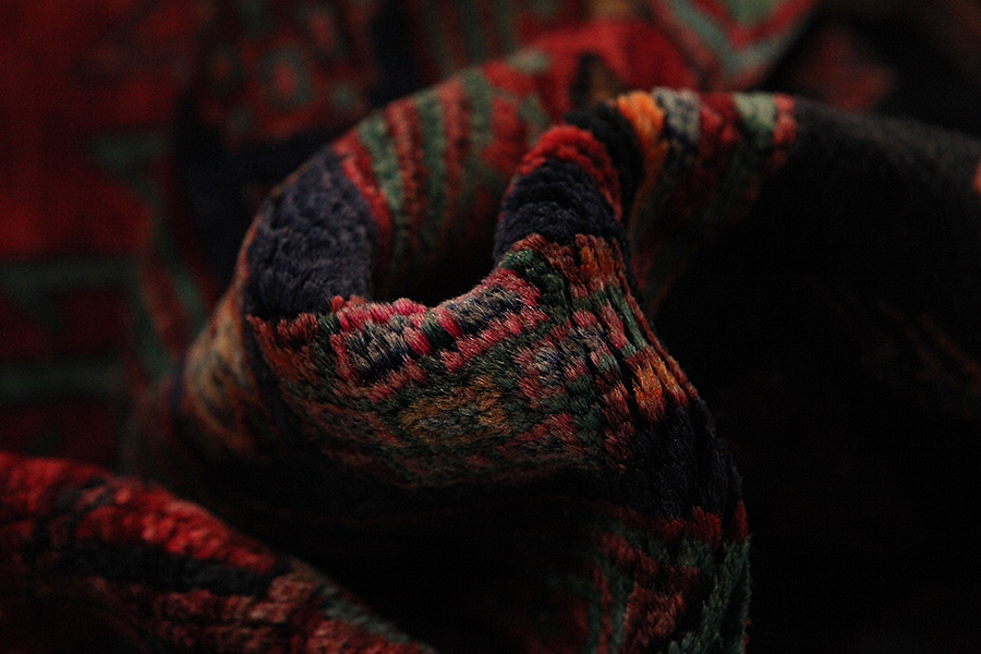 Abrash: Due to the different amount of grease in the wool and the added salt during the process of dyeing, the wool has got a varying colour absorbance. This is not very visible before weaving. During the weaving though, lines of the same colour are formed in the carpet. This is called Abrash (which in Farsi means little cloud) and it shows that the wool was not manufactured using chemical means and marks the naturalness and authenticity of the carpets. Examples
