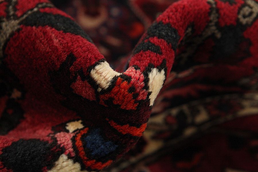 Abrash: Due to the different amount of grease in the wool and the added salt during the process of dyeing, the wool has got a varying colour absorbance. This is not very visible before weaving. During the weaving though, lines of the same colour are formed in the carpet. This is called Abrash (which in Farsi means little cloud) and it shows that the wool was not manufactured using chemical means and marks the naturalness and authenticity of the carpets. Examples