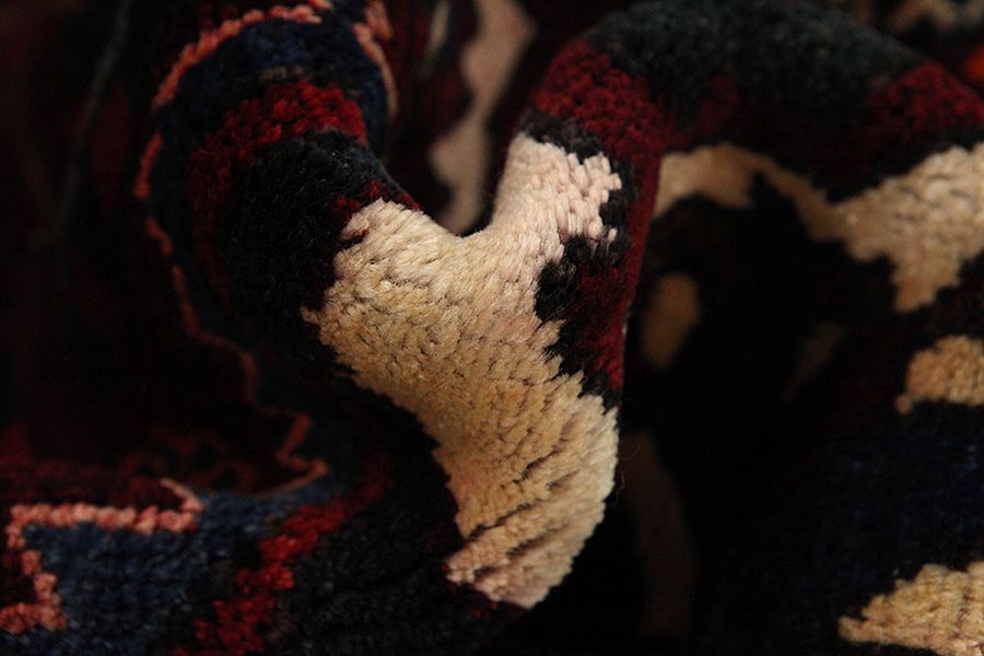 Abrash: Due to the different amount of grease in the wool and the added salt during the process of dyeing, the wool has got a varying colour absorbance. This is not very visible before weaving. During the weaving though, lines of the same colour are formed in the carpet. This is called Abrash (which in Farsi means little cloud) and it shows that the wool was not manufactured using chemical means and marks the naturalness and authenticity of the carpets. Examples