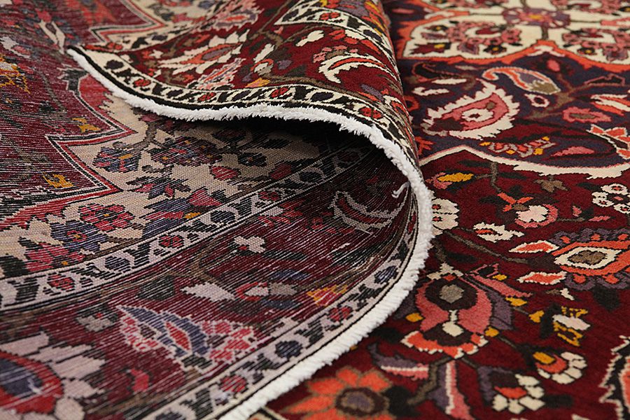 Abrash: Due to the different amount of grease in the wool and the added salt during the process of dyeing, the wool has got a varying colour absorbance. This is not very visible before weaving. During the weaving though, lines of the same colour are formed in the carpet. This is called Abrash (which in Farsi means little cloud) and it shows that the wool was not manufactured using chemical means and marks the naturalness and authenticity of the carpets. Examples