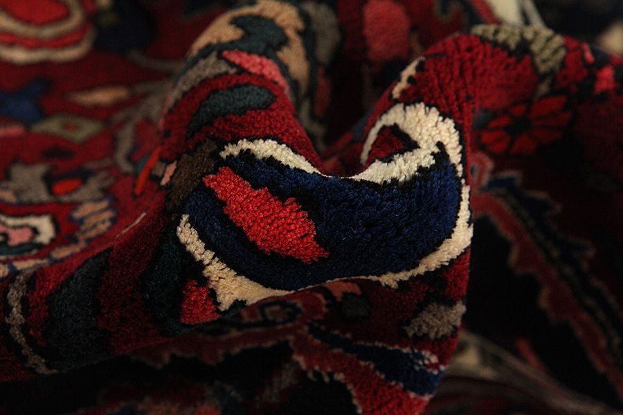 Abrash: Due to the different amount of grease in the wool and the added salt during the process of dyeing, the wool has got a varying colour absorbance. This is not very visible before weaving. During the weaving though, lines of the same colour are formed in the carpet. This is called Abrash (which in Farsi means little cloud) and it shows that the wool was not manufactured using chemical means and marks the naturalness and authenticity of the carpets. Examples