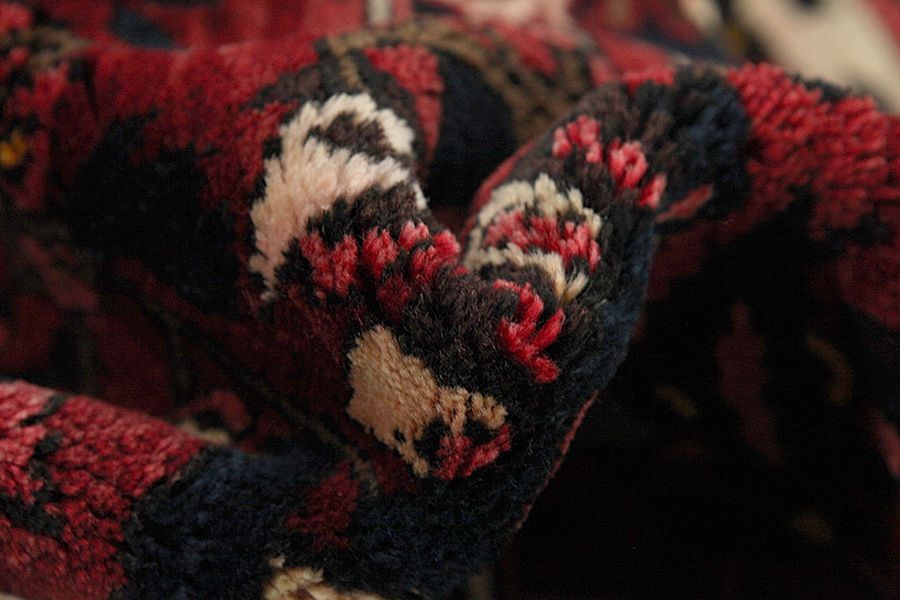 Abrash: Due to the different amount of grease in the wool and the added salt during the process of dyeing, the wool has got a varying colour absorbance. This is not very visible before weaving. During the weaving though, lines of the same colour are formed in the carpet. This is called Abrash (which in Farsi means little cloud) and it shows that the wool was not manufactured using chemical means and marks the naturalness and authenticity of the carpets. Examples