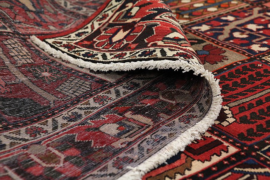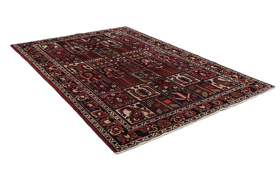 Bakhtiari Carpets : In the mountains Zagros, west of the city of Isfahan, around the town of Shahr-e-Kurd, live the nomads Bakhtiar. Their carpets are known for the design with various repeating squares in which flowers and animals are depicted. For this reason the design is called "garden"(Khesti). Their carpets are very durable with a dense weave and very good quality Persian wool coming from sheep grazing at a high altitude. The best Bakhtiar rugs and carpets with highest knot density are often called Bibibaff. Also in many designs we see influences from Isfahan carpets. (Boldaji - Feridan - Saman).