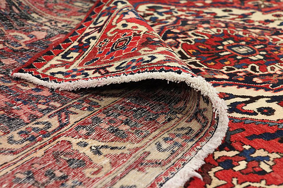 Abrash: Due to the different amount of grease in the wool and the added salt during the process of dyeing, the wool has got a varying colour absorbance. This is not very visible before weaving. During the weaving though, lines of the same colour are formed in the carpet. This is called Abrash (which in Farsi means little cloud) and it shows that the wool was not manufactured using chemical means and marks the naturalness and authenticity of the carpets. Examples