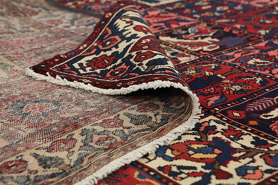 Bakhtiari Carpets : In the mountains Zagros, west of the city of Isfahan, around the town of Shahr-e-Kurd, live the nomads Bakhtiar. Their carpets are known for the design with various repeating squares in which flowers and animals are depicted. For this reason the design is called "garden"(Khesti). Their carpets are very durable with a dense weave and very good quality Persian wool coming from sheep grazing at a high altitude. The best Bakhtiar rugs and carpets with highest knot density are often called Bibibaff. Also in many designs we see influences from Isfahan carpets. (Boldaji - Feridan - Saman).