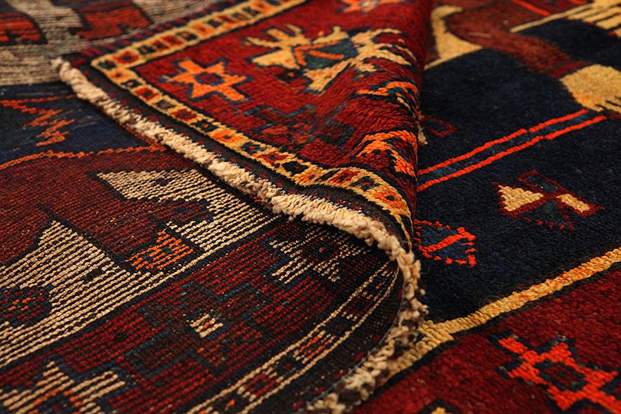 Qashqai Carpets : Qashqai carpets are woven by nomads who live in the mountainous areas of Southwest Persia, the provinces of Fars, Khuzestan, south of Isfahan and around the city Shiraz. Their carpets have a high knot density and a wide variety of designs, usually in deep red and blue colors. They weave carpets, Kilims and decorative textiles (ribbons, bags, etc.), which depict scenes from their lives with various representation of humans, animals, birds, trees and flowers. They also depict historical monuments, mostly from Persepolis.