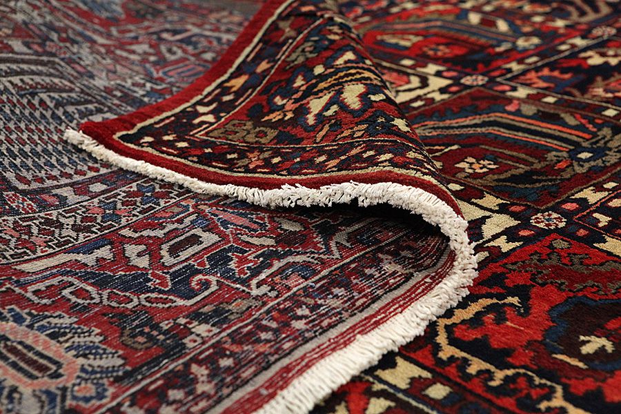 Bakhtiari Carpets : In the mountains Zagros, west of the city of Isfahan, around the town of Shahr-e-Kurd, live the nomads Bakhtiar. Their carpets are known for the design with various repeating squares in which flowers and animals are depicted. For this reason the design is called "garden"(Khesti). Their carpets are very durable with a dense weave and very good quality Persian wool coming from sheep grazing at a high altitude. The best Bakhtiar rugs and carpets with highest knot density are often called Bibibaff. Also in many designs we see influences from Isfahan carpets. (Boldaji - Feridan - Saman).