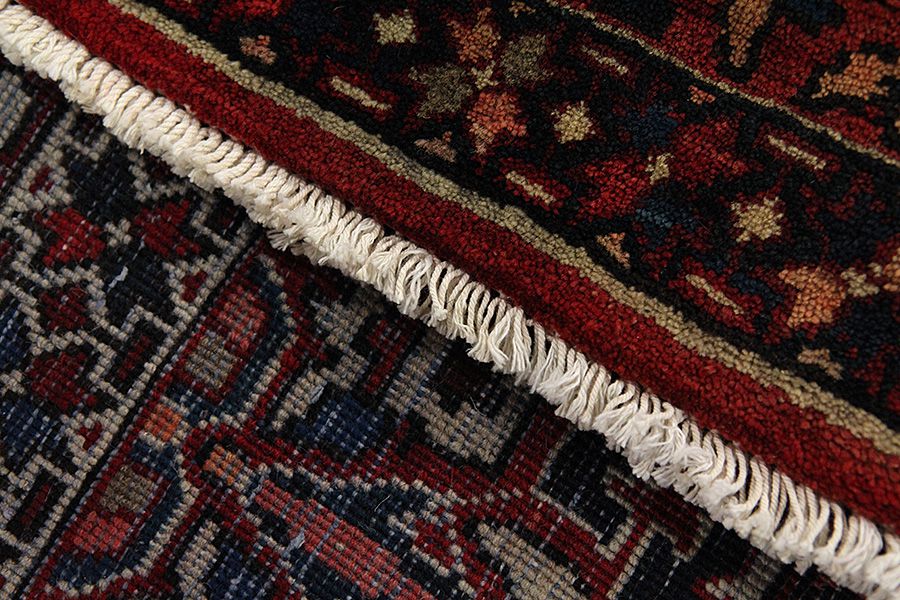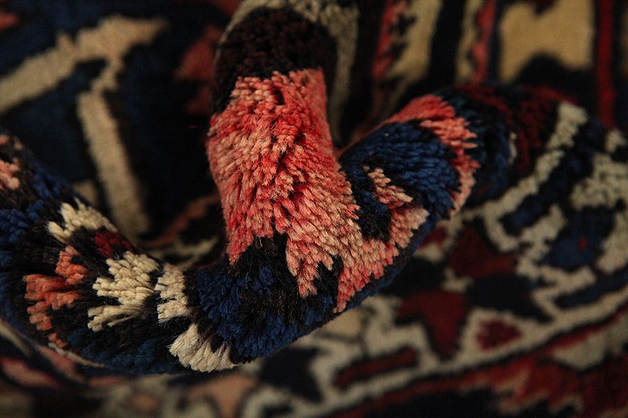 Abrash: Due to the different amount of grease in the wool and the added salt during the process of dyeing, the wool has got a varying colour absorbance. This is not very visible before weaving. During the weaving though, lines of the same colour are formed in the carpet. This is called Abrash (which in Farsi means little cloud) and it shows that the wool was not manufactured using chemical means and marks the naturalness and authenticity of the carpets. Examples