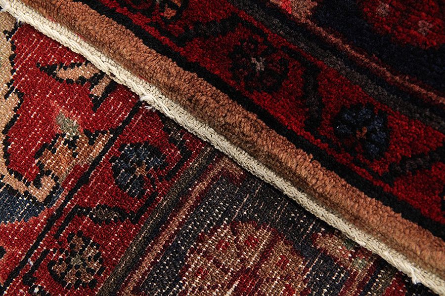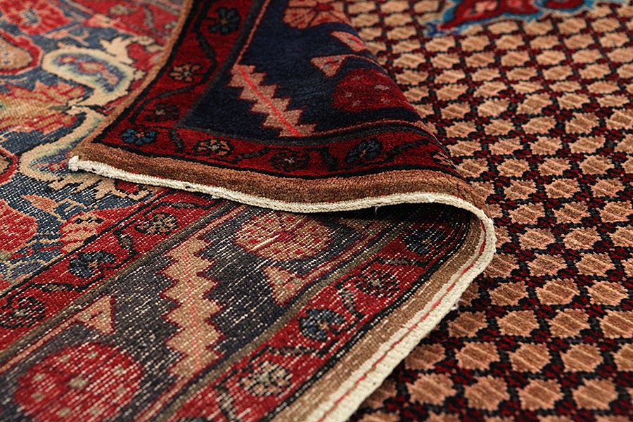 Abrash: Due to the different amount of grease in the wool and the added salt during the process of dyeing, the wool has got a varying colour absorbance. This is not very visible before weaving. During the weaving though, lines of the same colour are formed in the carpet. This is called Abrash (which in Farsi means little cloud) and it shows that the wool was not manufactured using chemical means and marks the naturalness and authenticity of the carpets. Examples