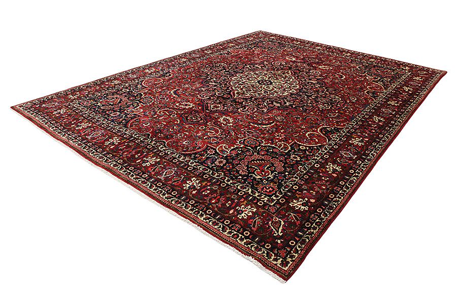 Bakhtiari Carpets : In the mountains Zagros, west of the city of Isfahan, around the town of Shahr-e-Kurd, live the nomads Bakhtiar. Their carpets are known for the design with various repeating squares in which flowers and animals are depicted. For this reason the design is called "garden"(Khesti). Their carpets are very durable with a dense weave and very good quality Persian wool coming from sheep grazing at a high altitude. The best Bakhtiar rugs and carpets with highest knot density are often called Bibibaff. Also in many designs we see influences from Isfahan carpets. (Boldaji - Feridan - Saman).