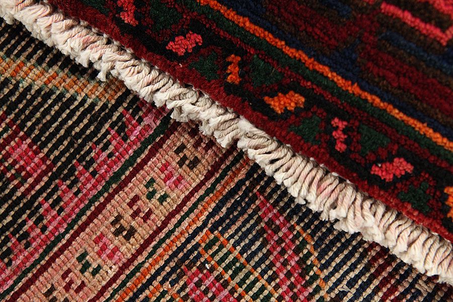 Abrash: Due to the different amount of grease in the wool and the added salt during the process of dyeing, the wool has got a varying colour absorbance. This is not very visible before weaving. During the weaving though, lines of the same colour are formed in the carpet. This is called Abrash (which in Farsi means little cloud) and it shows that the wool was not manufactured using chemical means and marks the naturalness and authenticity of the carpets. Examples