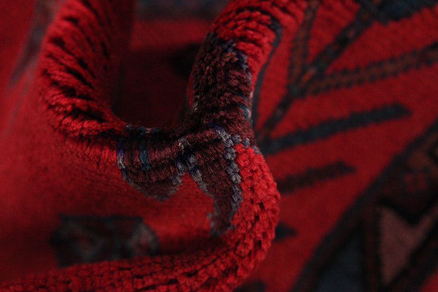 Abrash: Due to the different amount of grease in the wool and the added salt during the process of dyeing, the wool has got a varying colour absorbance. This is not very visible before weaving. During the weaving though, lines of the same colour are formed in the carpet. This is called Abrash (which in Farsi means little cloud) and it shows that the wool was not manufactured using chemical means and marks the naturalness and authenticity of the carpets. Examples