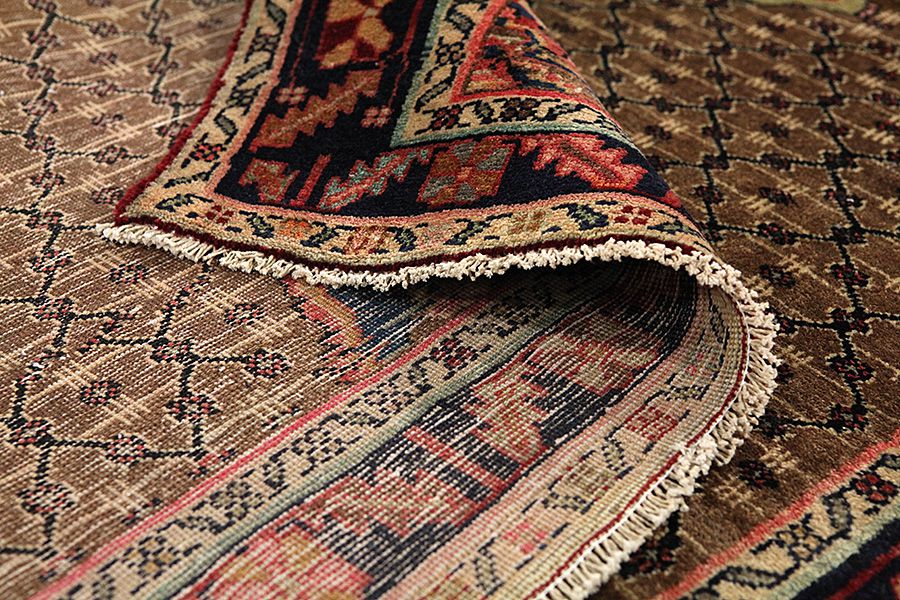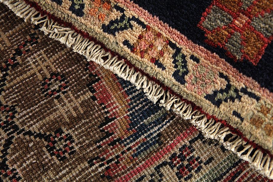 Abrash: Due to the different amount of grease in the wool and the added salt during the process of dyeing, the wool has got a varying colour absorbance. This is not very visible before weaving. During the weaving though, lines of the same colour are formed in the carpet. This is called Abrash (which in Farsi means little cloud) and it shows that the wool was not manufactured using chemical means and marks the naturalness and authenticity of the carpets. Examples