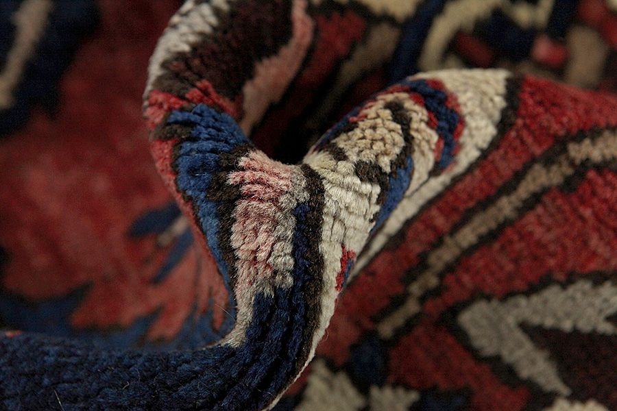 Abrash: Due to the different amount of grease in the wool and the added salt during the process of dyeing, the wool has got a varying colour absorbance. This is not very visible before weaving. During the weaving though, lines of the same colour are formed in the carpet. This is called Abrash (which in Farsi means little cloud) and it shows that the wool was not manufactured using chemical means and marks the naturalness and authenticity of the carpets. Examples