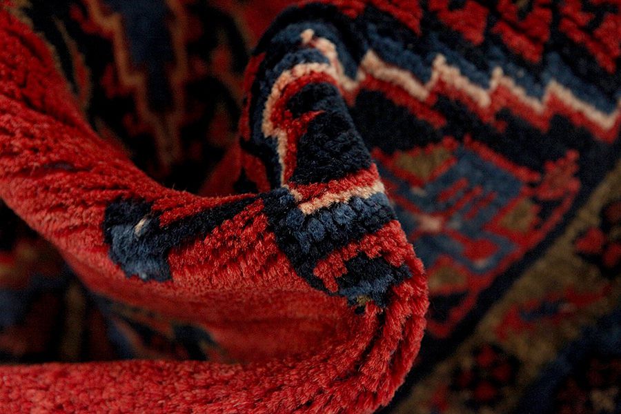 Enjelas Carpets : The small town Enjelas is located 15 km south of Hamadan. The carpets woven here have the same name and are dense and very durable. The most common design is called the "Herati" and is woven border to border repeatedly, rarely with a central medallion. The excellent quality of the wool they use is painted with natural colors that give the carpets a natural glow. The main colors used in Enjelas rugs are deep red with a complementary dark blue or vice versa, with a third color beingthe unpainted natural beige of the animal, which is used mainly in the borders and less in the rest of the area.