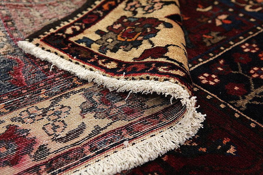 Abrash: Due to the different amount of grease in the wool and the added salt during the process of dyeing, the wool has got a varying colour absorbance. This is not very visible before weaving. During the weaving though, lines of the same colour are formed in the carpet. This is called Abrash (which in Farsi means little cloud) and it shows that the wool was not manufactured using chemical means and marks the naturalness and authenticity of the carpets. Examples