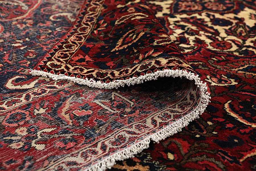 Abrash: Due to the different amount of grease in the wool and the added salt during the process of dyeing, the wool has got a varying colour absorbance. This is not very visible before weaving. During the weaving though, lines of the same colour are formed in the carpet. This is called Abrash (which in Farsi means little cloud) and it shows that the wool was not manufactured using chemical means and marks the naturalness and authenticity of the carpets. Examples