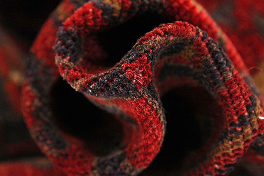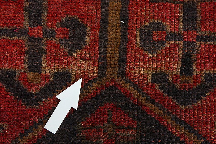 Abrash: Due to the different amount of grease in the wool and the added salt during the process of dyeing, the wool has got a varying colour absorbance. This is not very visible before weaving. During the weaving though, lines of the same colour are formed in the carpet. This is called Abrash (which in Farsi means little cloud) and it shows that the wool was not manufactured using chemical means and marks the naturalness and authenticity of the carpets. Examples