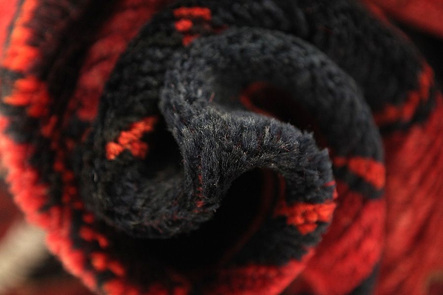 Abrash: Due to the different amount of grease in the wool and the added salt during the process of dyeing, the wool has got a varying colour absorbance. This is not very visible before weaving. During the weaving though, lines of the same colour are formed in the carpet. This is called Abrash (which in Farsi means little cloud) and it shows that the wool was not manufactured using chemical means and marks the naturalness and authenticity of the carpets. Examples