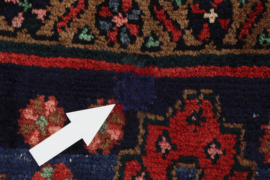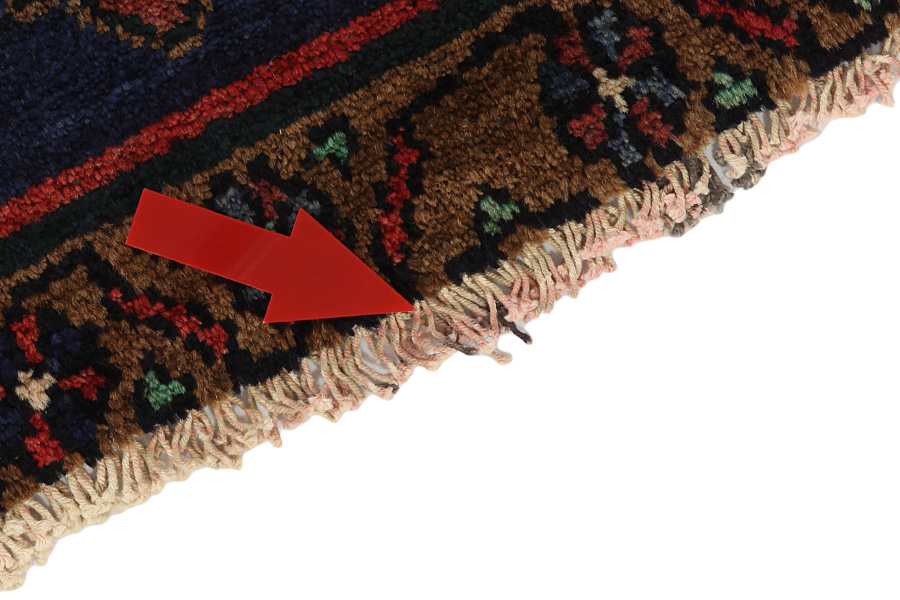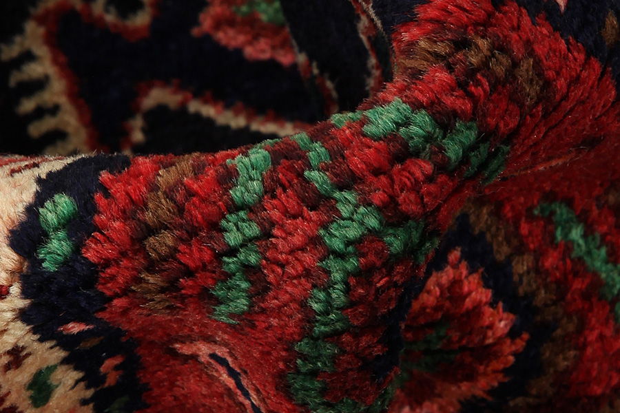 Abrash: Due to the different amount of grease in the wool and the added salt during the process of dyeing, the wool has got a varying colour absorbance. This is not very visible before weaving. During the weaving though, lines of the same colour are formed in the carpet. This is called Abrash (which in Farsi means little cloud) and it shows that the wool was not manufactured using chemical means and marks the naturalness and authenticity of the carpets. Examples