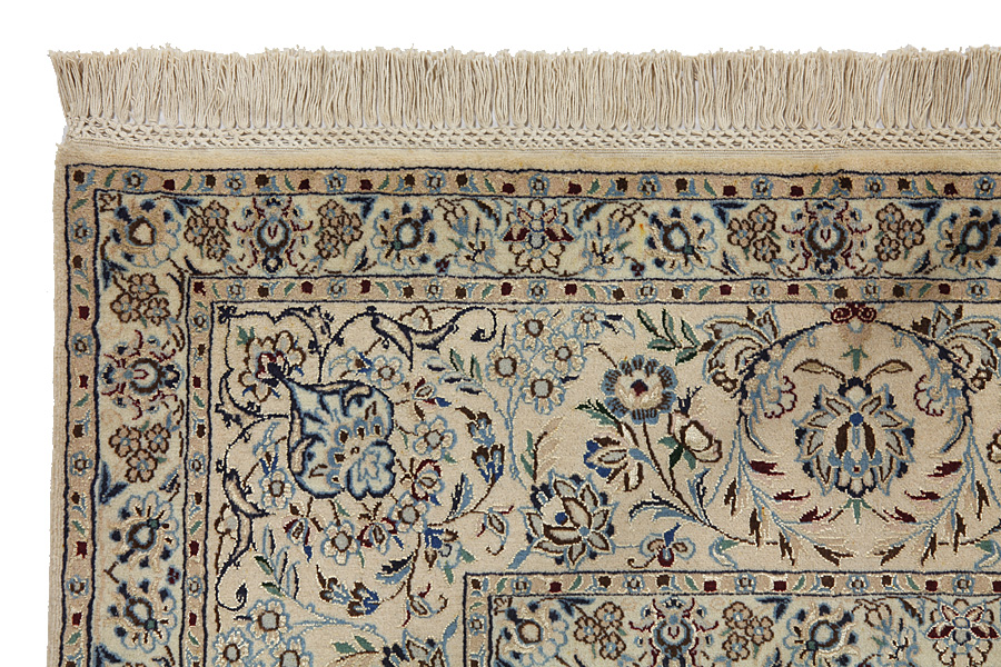 Nain6la Carpets : Nain carpets are often woven in areas around the city Nain, not necessarily in the city itself. The warp in these carpets is typically of cotton. The warp consists of a number of threads that are referred to as "La". Fine woven Nain have 6 threads (6La). Today, the city Nain produces only very stylish 6s of quality La.