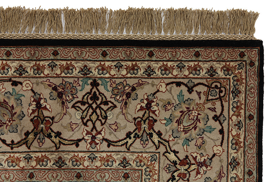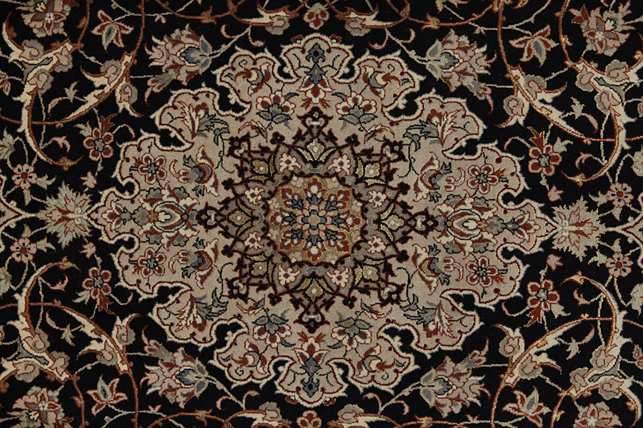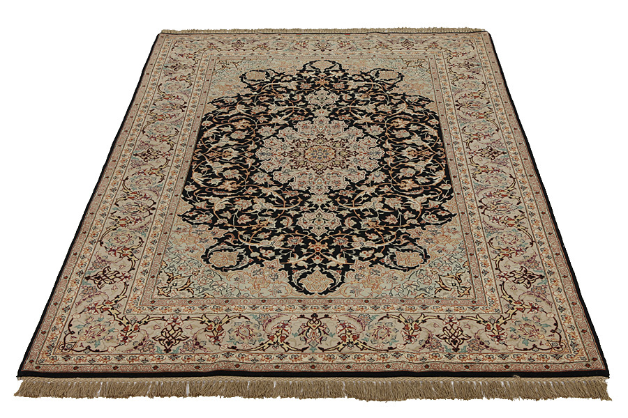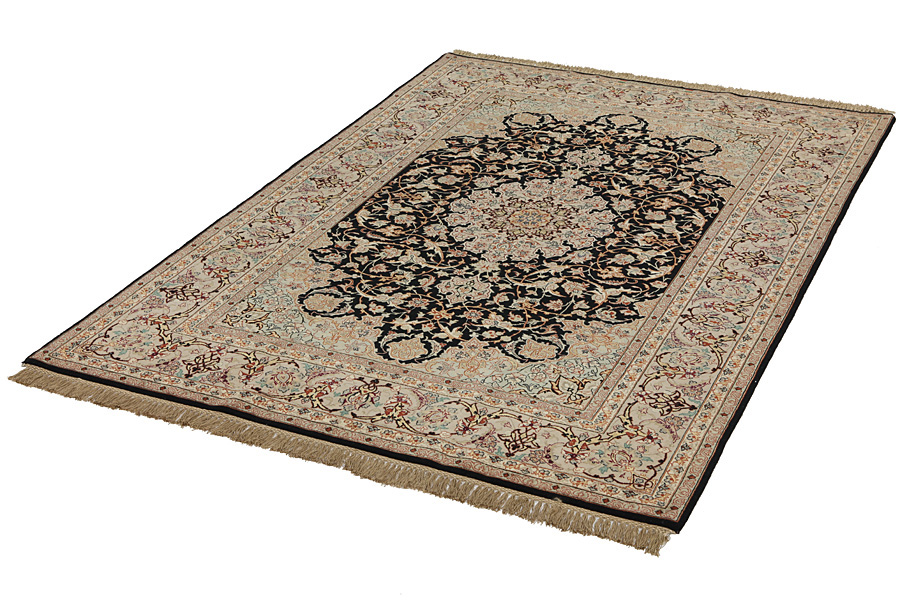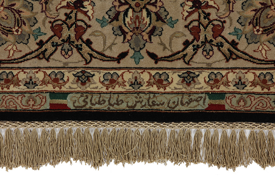 Isfahan Carpets : In the centre of Iran among the Zagros Mountains and the desert, lies the city of Isfahan. Nowadays it is an important industrial city with a population of 1.2 million. The town is an architectural masterpiece. The old carpets of Isfahan in contrast with the newer ones didn't have got a central medallion. The entire surface of the carpet was filled with elaborate spiral flowers and flower palmettes. The newer Isfahan rugs and carpets cannot be compared with those wonderful old specimens which were manufactured exclusively for nobles. But continuing the tradition, today's carpets of Isfahan also have a very fine weave and are clipped very short to reveal their design more clearly. In the weaving they also use silk to highlight certain areas of the design, especially in flowers. The warp is made of silk or cotton.