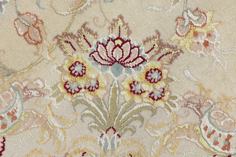 Tabriz Carpets : The city of Tabriz is the capital of Azerbaijan province in Northwestern Iran. Until the end of the caravans era it was the most important centre for trade and carpet weaving. Tabriz supplied the West with masterpieces that were made by renowned and very capable weavers. Their high quality of Tabriz carpets made them renowned in world markets. Many workshops where created where hand-woven carpets with very high density knots and high quality materials where woven. Silk and fine quality wool establish these carpets as very high class. No other city in Persia produced such large quantity or variety of carpets. With or without a medallion, their designs are full of imagination and individuality. Flowers, scenes, stanzas of poems often decorate them. Their predominant colors are beige, blue and red.