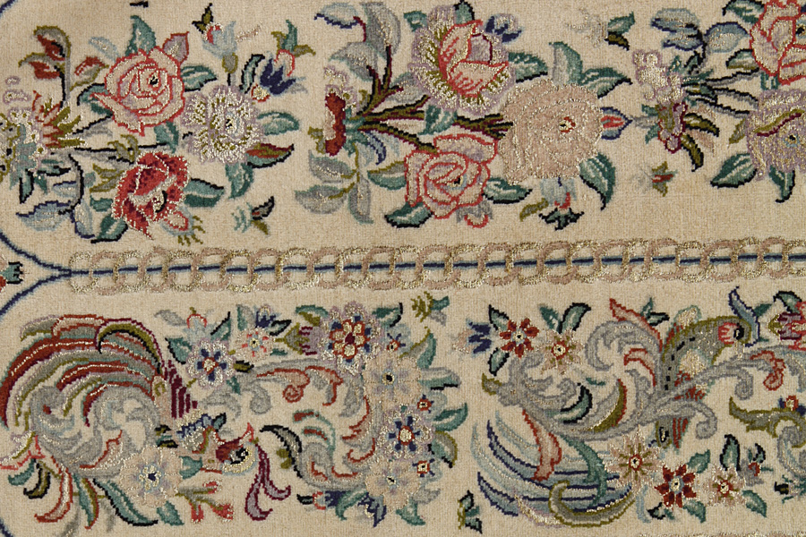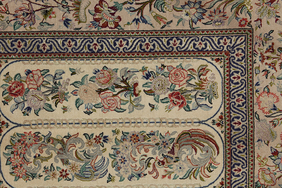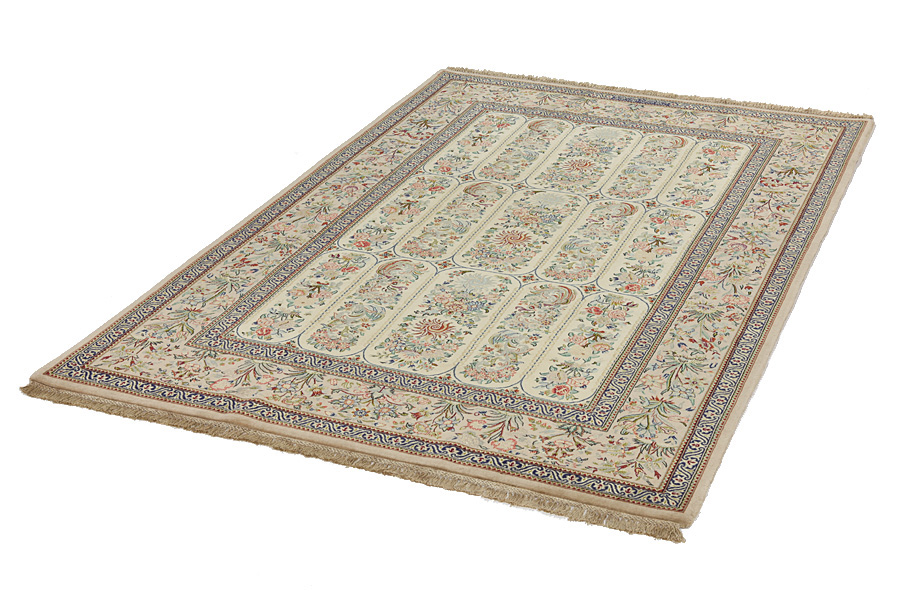 Isfahan Carpets : In the centre of Iran among the Zagros Mountains and the desert, lies the city of Isfahan. Nowadays it is an important industrial city with a population of 1.2 million. The town is an architectural masterpiece. The old carpets of Isfahan in contrast with the newer ones didn't have got a central medallion. The entire surface of the carpet was filled with elaborate spiral flowers and flower palmettes. The newer Isfahan rugs and carpets cannot be compared with those wonderful old specimens which were manufactured exclusively for nobles. But continuing the tradition, today's carpets of Isfahan also have a very fine weave and are clipped very short to reveal their design more clearly. In the weaving they also use silk to highlight certain areas of the design, especially in flowers. The warp is made of silk or cotton.