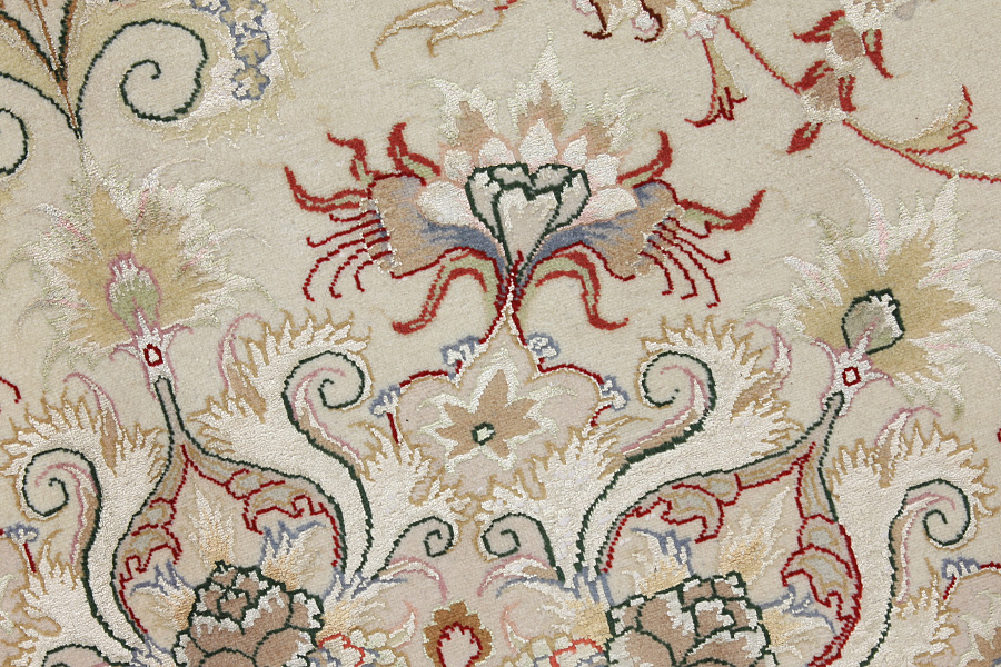 Tabriz Carpets : The city of Tabriz is the capital of Azerbaijan province in Northwestern Iran. Until the end of the caravans era it was the most important centre for trade and carpet weaving. Tabriz supplied the West with masterpieces that were made by renowned and very capable weavers. Their high quality of Tabriz carpets made them renowned in world markets. Many workshops where created where hand-woven carpets with very high density knots and high quality materials where woven. Silk and fine quality wool establish these carpets as very high class. No other city in Persia produced such large quantity or variety of carpets. With or without a medallion, their designs are full of imagination and individuality. Flowers, scenes, stanzas of poems often decorate them. Their predominant colors are beige, blue and red.