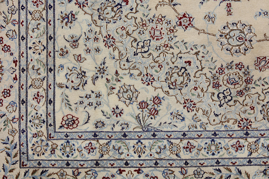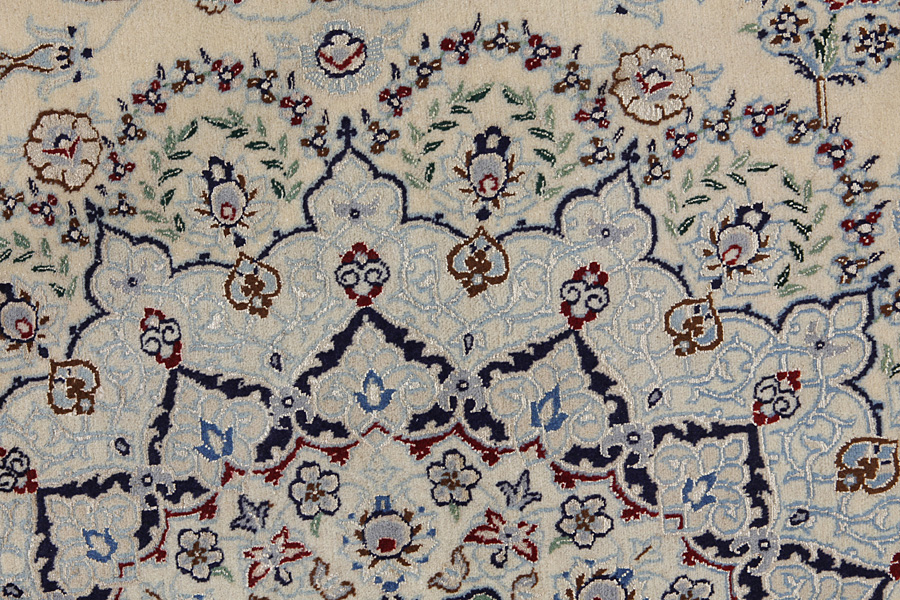 Nain6la Carpets : Nain carpets are often woven in areas around the city Nain, not necessarily in the city itself. The warp in these carpets is typically of cotton. The warp consists of a number of threads that are referred to as "La". Fine woven Nain have 6 threads (6La). Today, the city Nain produces only very stylish 6s of quality La.