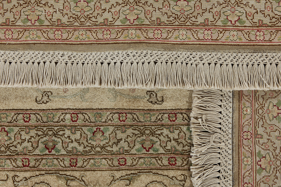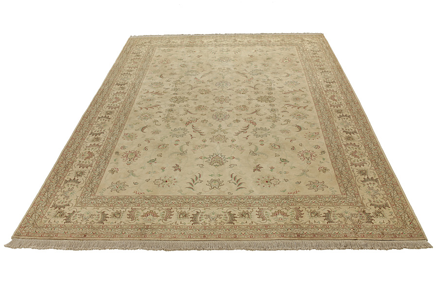 Tabriz Carpets : The city of Tabriz is the capital of Azerbaijan province in Northwestern Iran. Until the end of the caravans era it was the most important centre for trade and carpet weaving. Tabriz supplied the West with masterpieces that were made by renowned and very capable weavers. Their high quality of Tabriz carpets made them renowned in world markets. Many workshops where created where hand-woven carpets with very high density knots and high quality materials where woven. Silk and fine quality wool establish these carpets as very high class. No other city in Persia produced such large quantity or variety of carpets. With or without a medallion, their designs are full of imagination and individuality. Flowers, scenes, stanzas of poems often decorate them. Their predominant colors are beige, blue and red.
