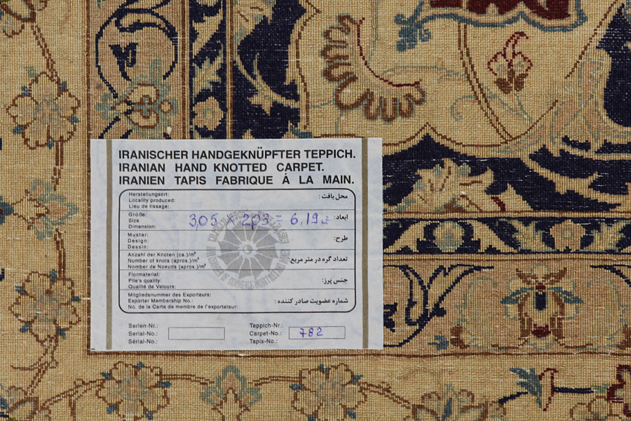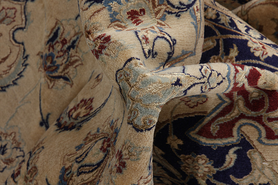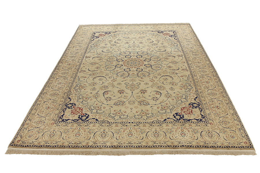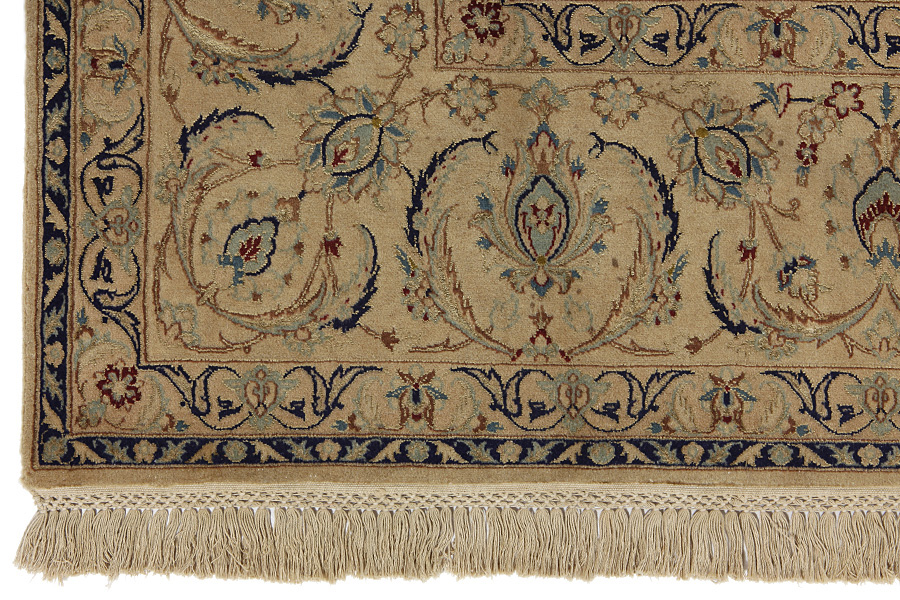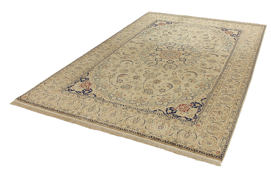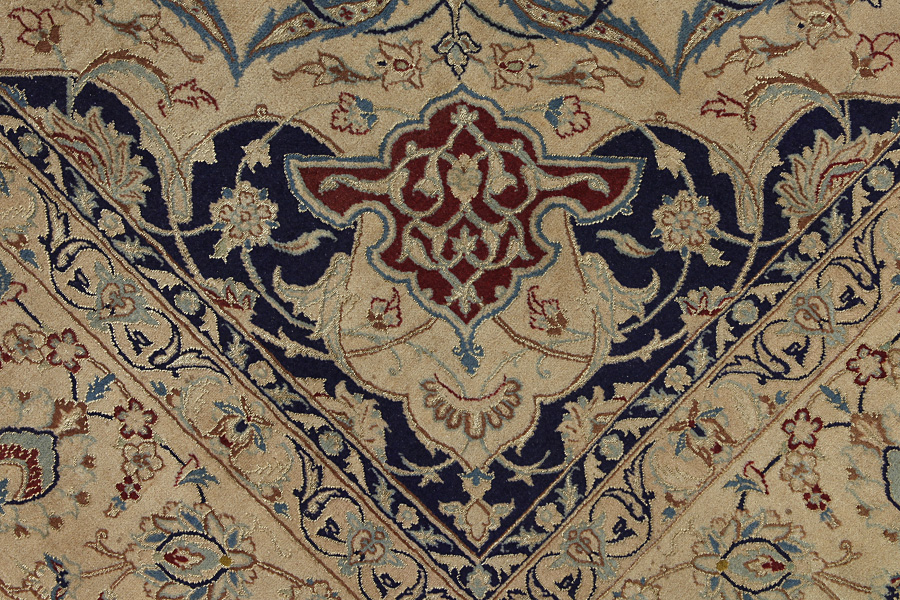 Nain6la Carpets : Nain carpets are often woven in areas around the city Nain, not necessarily in the city itself. The warp in these carpets is typically of cotton. The warp consists of a number of threads that are referred to as "La". Fine woven Nain have 6 threads (6La). Today, the city Nain produces only very stylish 6s of quality La.