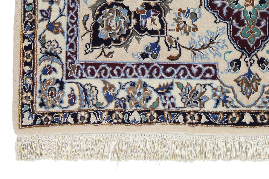 Nain6la Carpets : Nain carpets are often woven in areas around the city Nain, not necessarily in the city itself. The warp in these carpets is typically of cotton. The warp consists of a number of threads that are referred to as "La". Fine woven Nain have 6 threads (6La). Today, the city Nain produces only very stylish 6s of quality La.