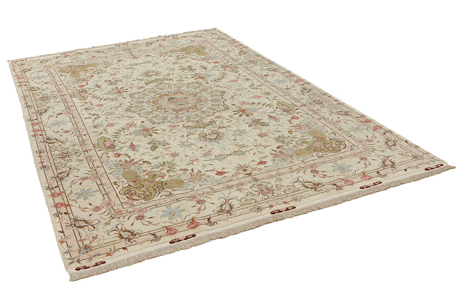 Tabriz Carpets : The city of Tabriz is the capital of Azerbaijan province in Northwestern Iran. Until the end of the caravans era it was the most important centre for trade and carpet weaving. Tabriz supplied the West with masterpieces that were made by renowned and very capable weavers. Their high quality of Tabriz carpets made them renowned in world markets. Many workshops where created where hand-woven carpets with very high density knots and high quality materials where woven. Silk and fine quality wool establish these carpets as very high class. No other city in Persia produced such large quantity or variety of carpets. With or without a medallion, their designs are full of imagination and individuality. Flowers, scenes, stanzas of poems often decorate them. Their predominant colors are beige, blue and red.