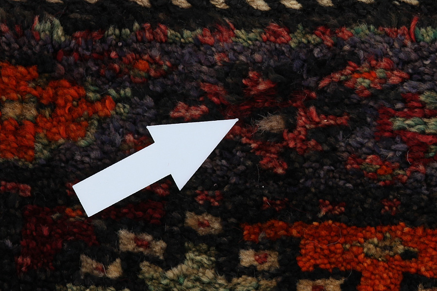 Abrash: Due to the different amount of grease in the wool and the added salt during the process of dyeing, the wool has got a varying colour absorbance. This is not very visible before weaving. During the weaving though, lines of the same colour are formed in the carpet. This is called Abrash (which in Farsi means little cloud) and it shows that the wool was not manufactured using chemical means and marks the naturalness and authenticity of the carpets. Examples